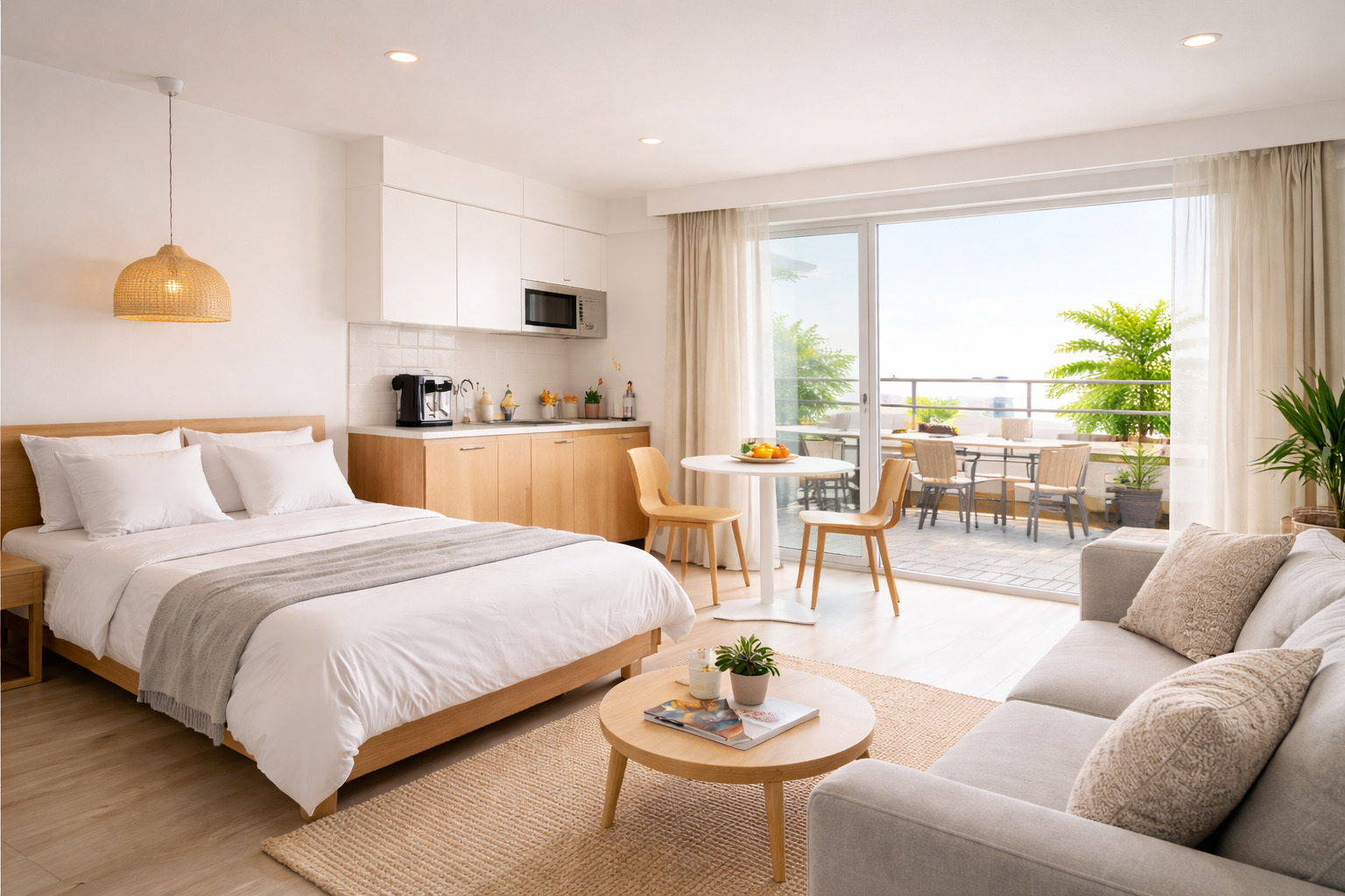 マンションを活用し、宿泊施設として運用。運用・管理まで一括対応し、安定した収益化を実現します。